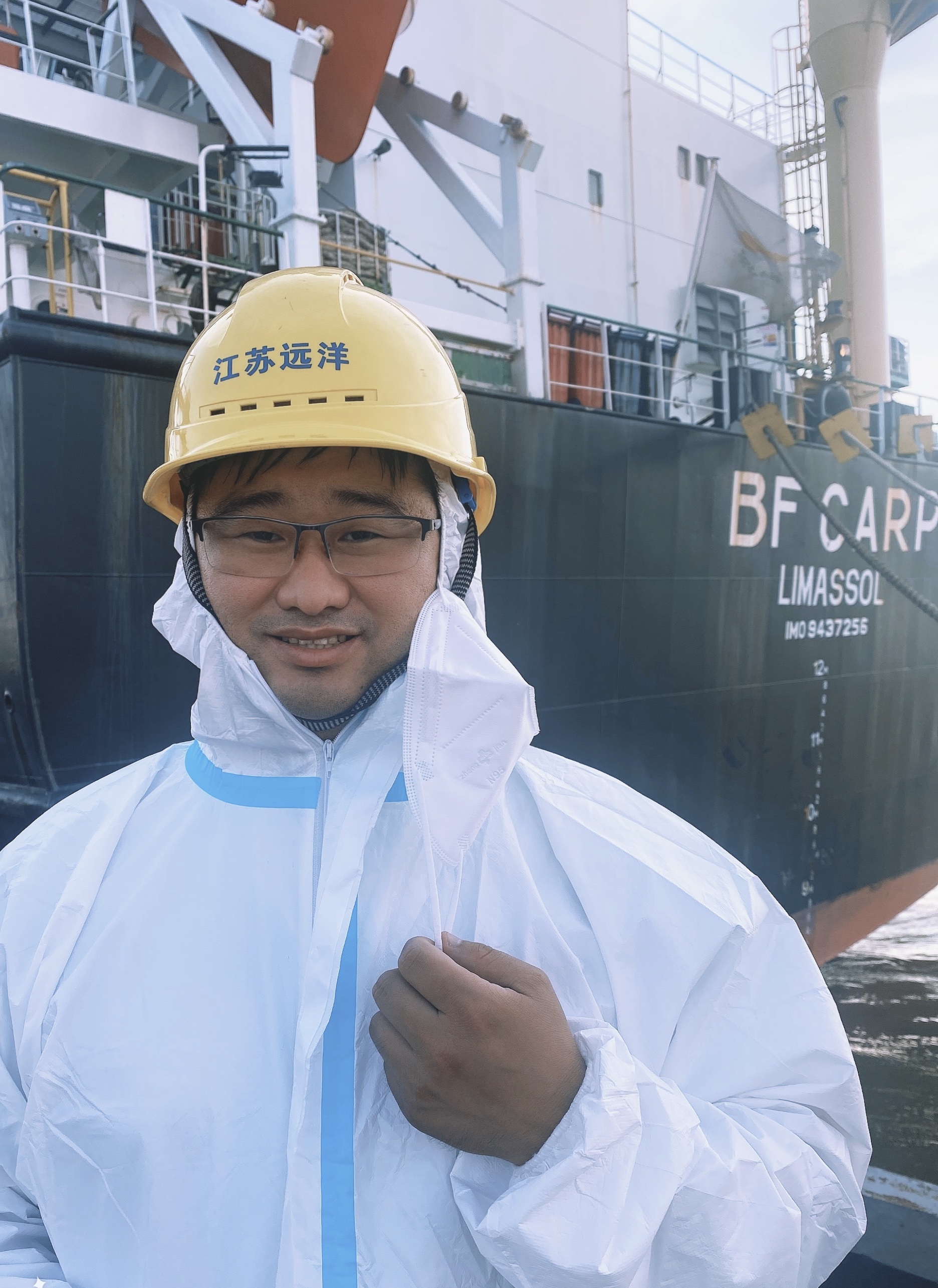 今年我選擇了在船上堅守崗位。此時我輪在青島港碼頭裝貨,我和弟兄們一起,毫不松懈繼續(xù)嚴格落實落細各項疫情防控措施,加強對外來上船人員的防控管理,從政治高度做好疫情防控工作。