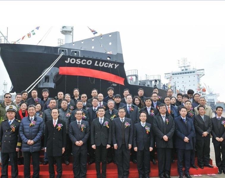 2018年3月8日,江蘇遠(yuǎn)洋運(yùn)輸有限公司通過融資租賃形式投資建造的三艘1900TEU集裝箱船中的首艘“JOSCO LUCKY”輪,在揚(yáng)子江船業(yè)集團(tuán)公司舉行了命名交付儀式。江蘇省港口集團(tuán)黨委副書記、副總經(jīng)理王樹華為新船命名交付致辭,江蘇省港口集團(tuán)規(guī)劃投資部朱從富部長為新船開啟香檳,江蘇遠(yuǎn)洋運(yùn)輸有限公司總經(jīng)理毛雪強(qiáng)為新船命名。日本海事協(xié)會副會長飯?zhí)餄櫼焕上壬?、日本船級社中國區(qū)總裁成澤平先生、江蘇揚(yáng)子江船業(yè)集團(tuán)公司副董事長王建生先生、總經(jīng)理任樂天先生、副總經(jīng)理宋書明先生、副總經(jīng)理兼新?lián)P子總經(jīng)理呂堅(jiān)煒先生、副總經(jīng)理張濤先生等參加了命名交船儀式。