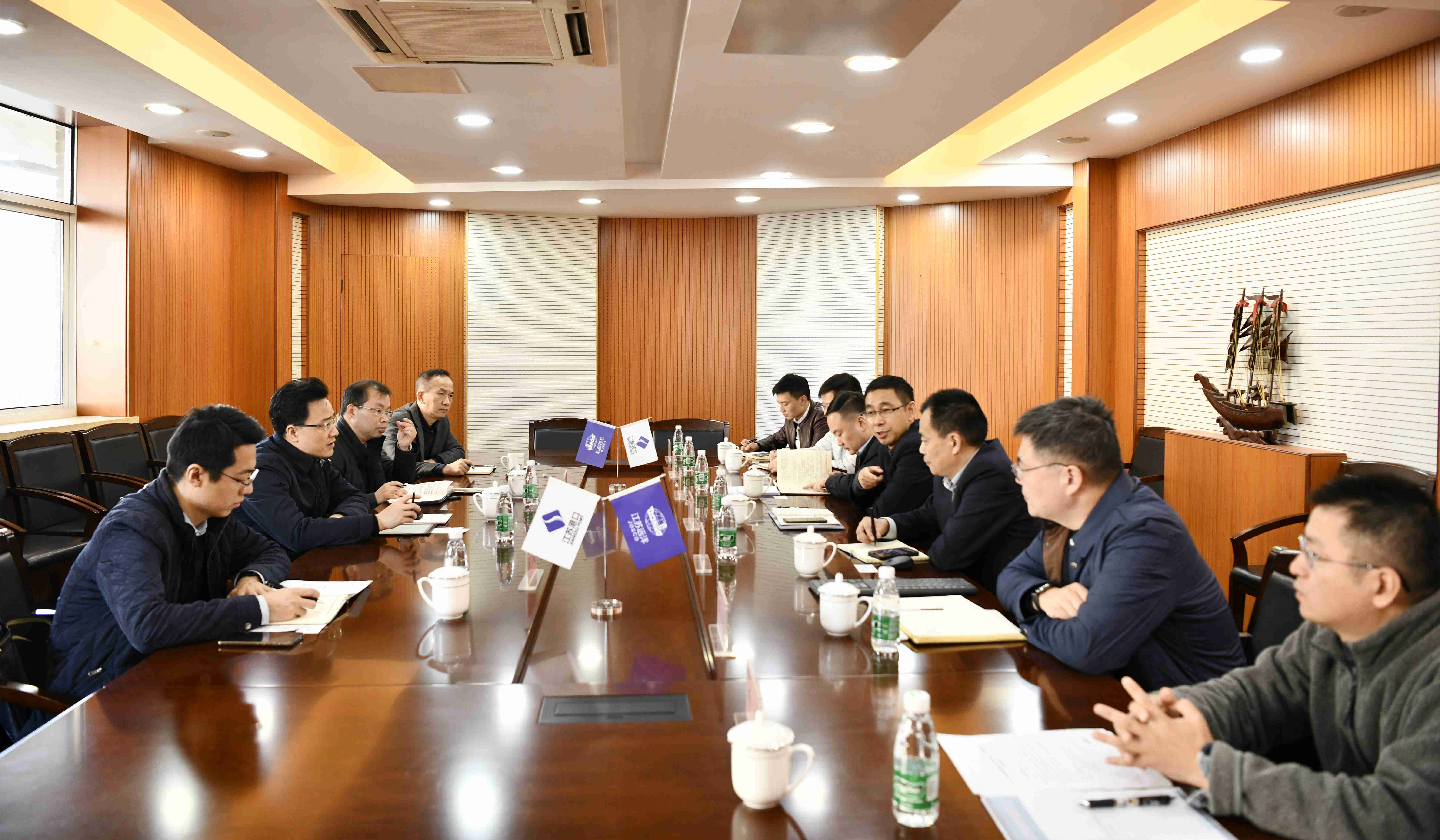 11月24日下午,南京市商務(wù)局副局長談?dòng)侣首再Q(mào)區(qū)處、服貿(mào)處相關(guān)負(fù)責(zé)人到訪江蘇遠(yuǎn)洋。公司總經(jīng)理、黨委副書記戴偉與談?dòng)乱恍杏H切交流。公司投資發(fā)展部、航運(yùn)部、資產(chǎn)財(cái)務(wù)部及新世紀(jì)公司主要負(fù)責(zé)人陪同參會(huì)。