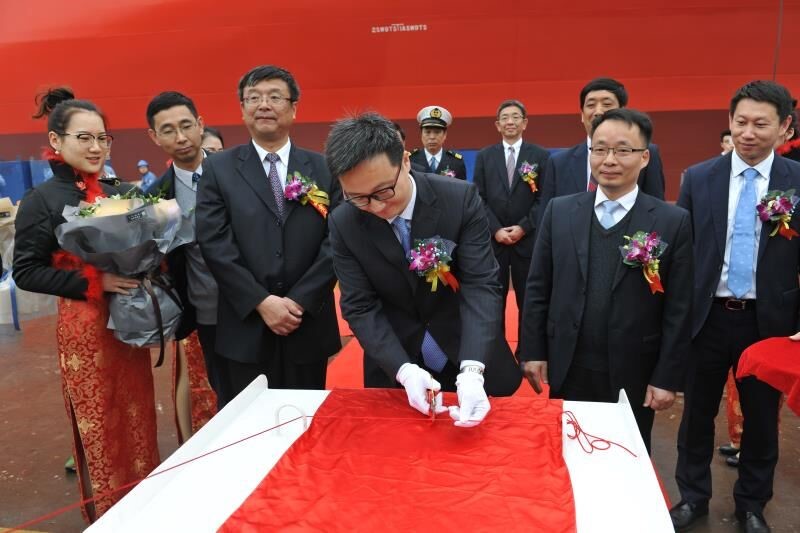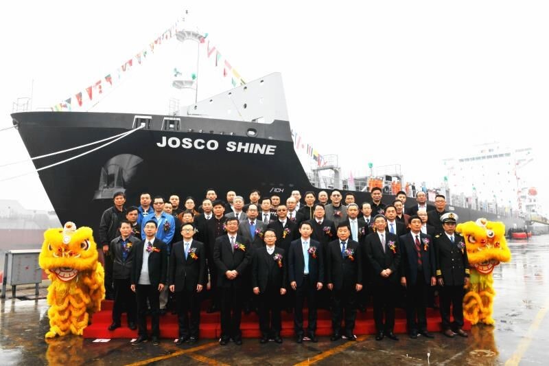 2018年3月15日上午,繼上周首艘“JOSCO LUCKY”輪的順利交付,今天又在揚(yáng)子江船業(yè)集團(tuán)公司舉行了“JOSCO SHINE”輪的命名交付儀式。江蘇遠(yuǎn)洋運(yùn)輸有限公司總經(jīng)理毛雪強(qiáng)為新船命名交付致辭,副總經(jīng)理李斌為新船砍纜開(kāi)啟香檳,副總經(jīng)理瞿名澤為新船命名。江蘇揚(yáng)子江船業(yè)集團(tuán)公司、NK船級(jí)社以及太倉(cāng)港集裝箱海運(yùn)有限公司等相關(guān)單位的領(lǐng)導(dǎo)和嘉賓蒞臨了儀式現(xiàn)場(chǎng)。