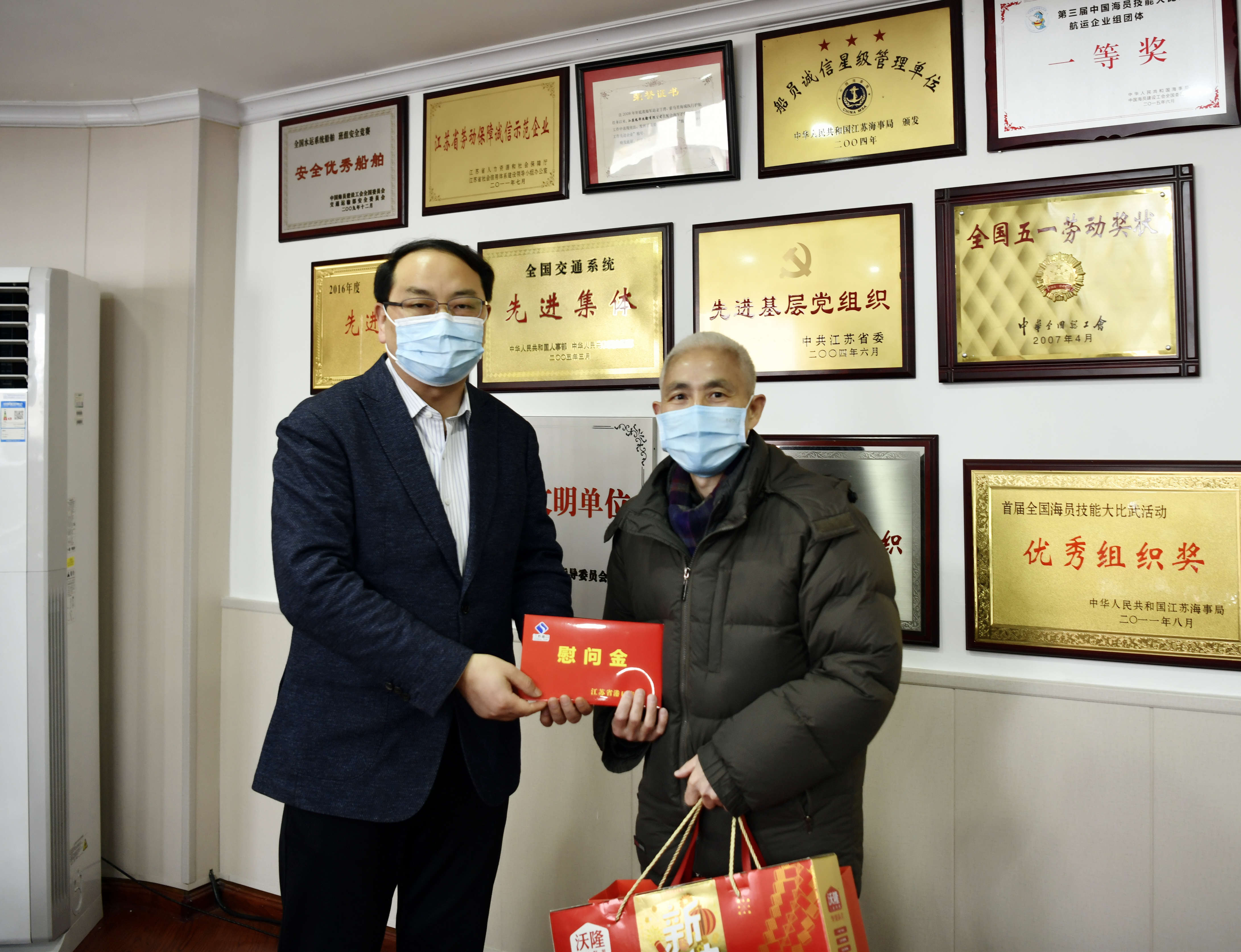 為確保節(jié)日期間安全生產(chǎn)形勢穩(wěn)定和疫情防控工作扎實有效,1月21日,省港口集團黨委委員、副總經(jīng)理譚瑞兵帶隊到江蘇遠洋開展2022年春節(jié)前安全生產(chǎn)和疫情防控工作檢查,并對遠洋船員和困難員工進行慰問。集團辦公室、科技裝備部、黨委組織部、審計法務(wù)部負責(zé)人及安全環(huán)保部、群眾工作部相關(guān)人員,公司黨委書記、董事長晁陽,總經(jīng)理、黨委副書記戴偉及其他領(lǐng)導(dǎo)班子成員陪同檢查、慰問。