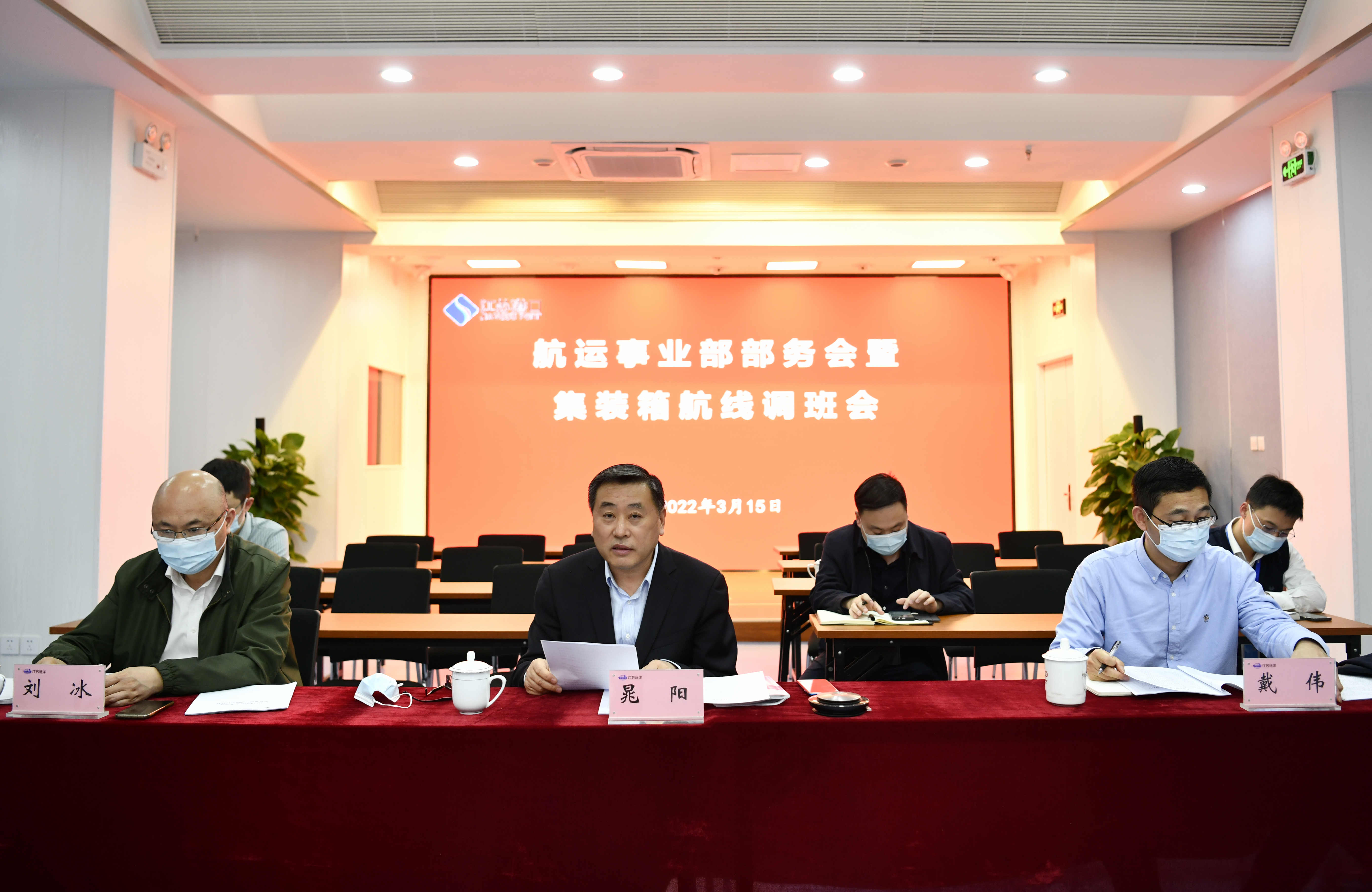 3月15日下午,省港口集團(tuán)航運(yùn)事業(yè)部召開部務(wù)會,集團(tuán)分管領(lǐng)導(dǎo)、生產(chǎn)業(yè)務(wù)部(總調(diào)度室)領(lǐng)導(dǎo)應(yīng)邀出席并講話,事業(yè)部相關(guān)負(fù)責(zé)人參加會議。集裝箱公司、蘇州港、連云港港、鹽城港、徐州港、淮安港、宿遷港和南京港龍?zhí)洞a頭等港方代表應(yīng)邀參加。航運(yùn)事業(yè)部部長,江蘇遠(yuǎn)洋黨委書記、董事長晁陽主持會議。