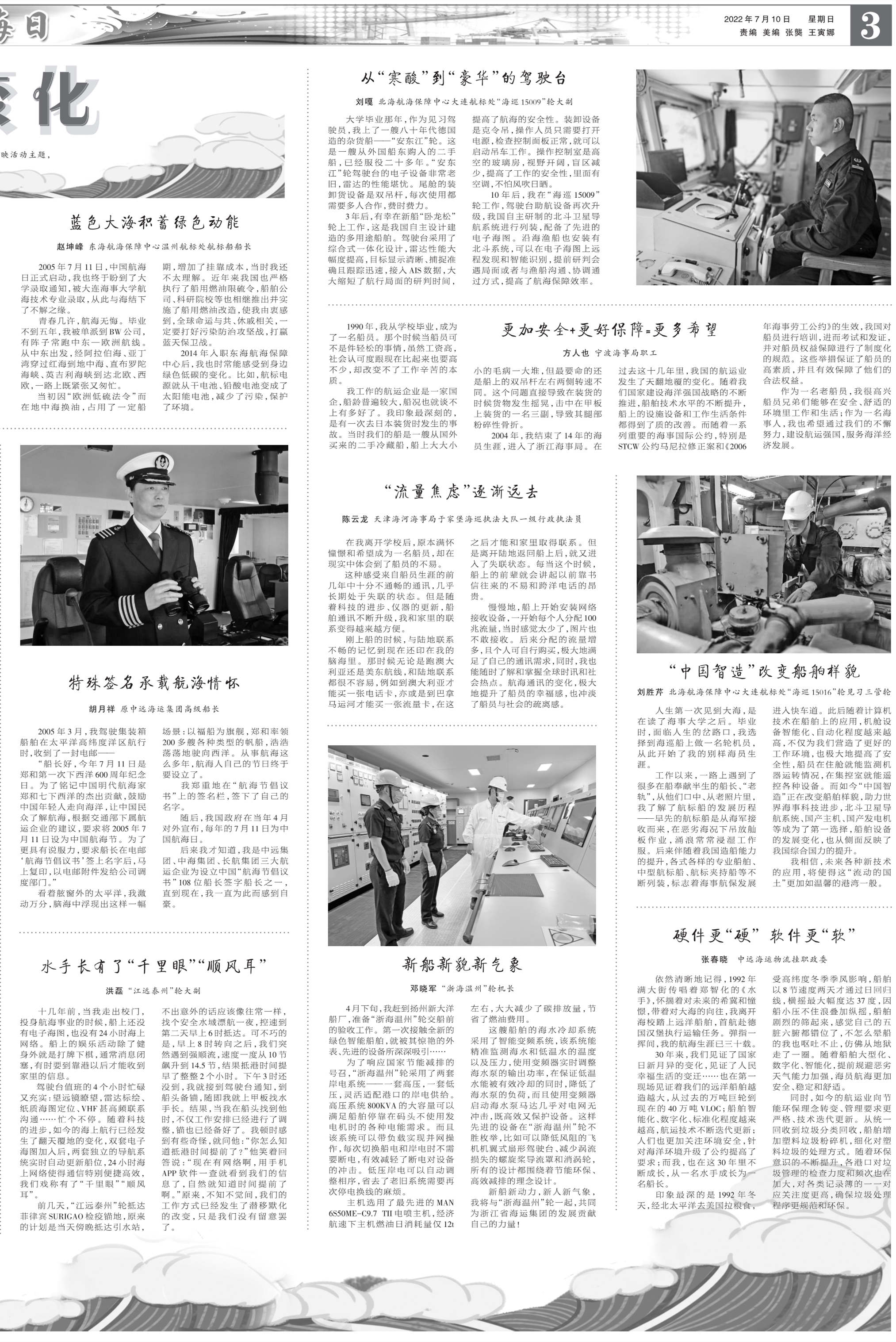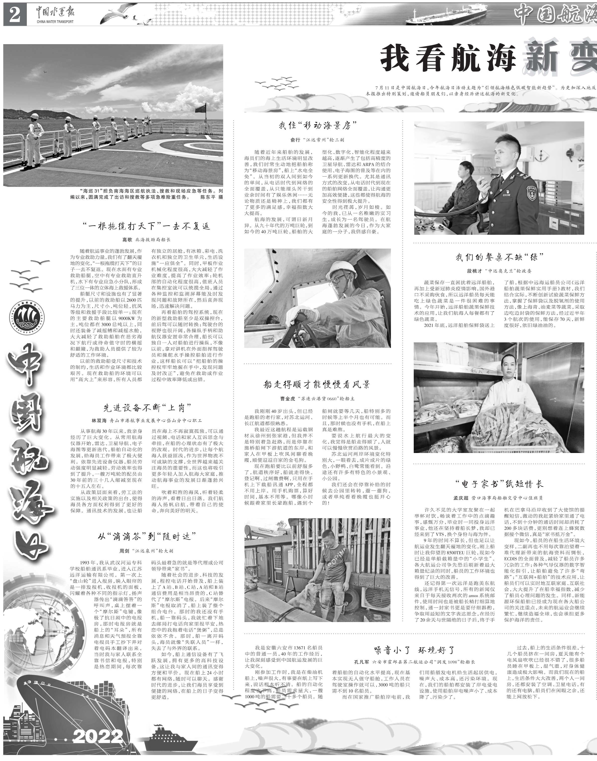 如今,船上通信設(shè)備有了飛躍發(fā)展,擁有更多的高科技設(shè)備,這讓我與家人間的通訊變得方便和平價(jià)?,F(xiàn)在船上24小時(shí)都有網(wǎng)絡(luò),隨時(shí)可以聊天。感謝時(shí)代的進(jìn)步,讓我們海員享受到便捷的網(wǎng)絡(luò),在船上的日子變得更舒適。