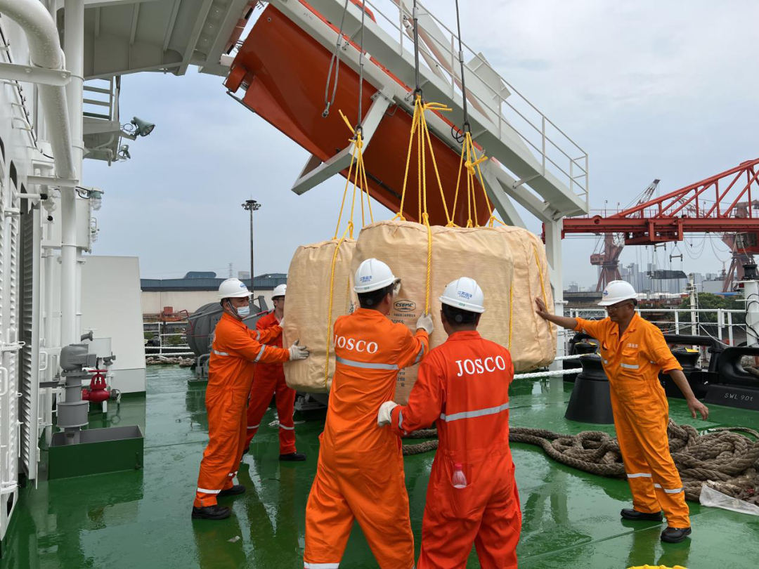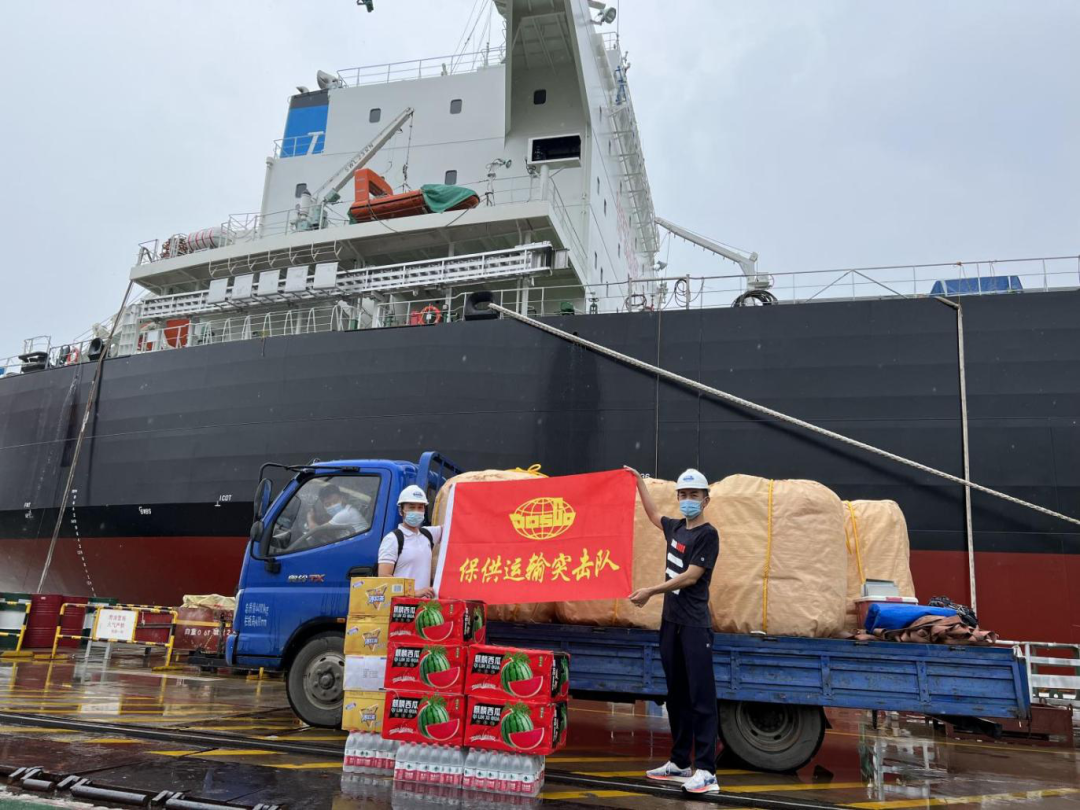 副總經(jīng)理潘良杰帶隊與供船部經(jīng)理郭慶一道,指揮調(diào)度物料供給全程。