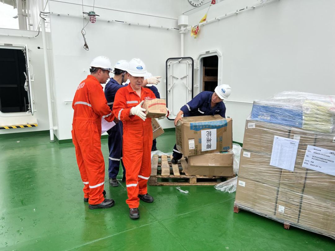 為了準(zhǔn)確對接時間,要跟船長、大副、碼頭調(diào)度確定好時間并按時進(jìn)場。然后就是搬運物料-綁扎固定-指揮吊貨-吊鉤消毒-電子簽收,一氣呵成。