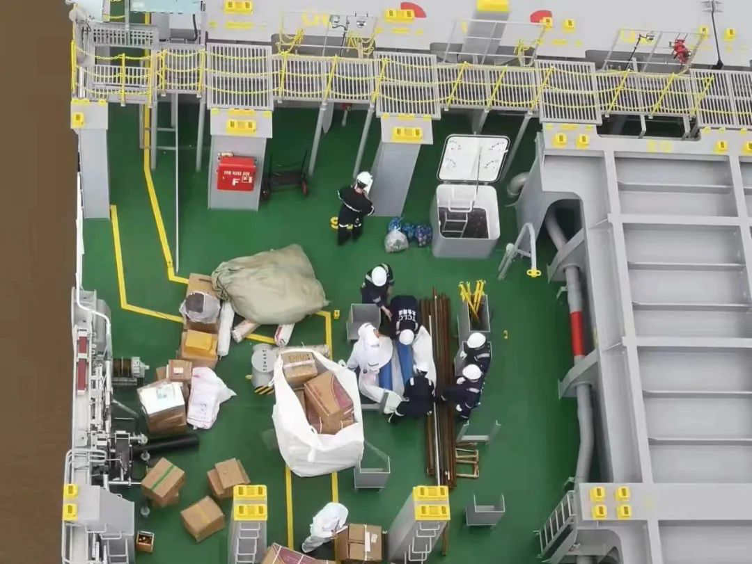 9月3日,第二批接船船員冒雨抵達(dá)秀山,在躲避臺(tái)風(fēng)的同時(shí)完成了三天兩次核酸檢測。臺(tái)風(fēng)過后,經(jīng)協(xié)商要進(jìn)行第二次試航,原計(jì)劃9月6日清關(guān)之后供物料和綁扎件,現(xiàn)在只能推遲了。9月7日早上,第一批試航的9名船員再次登船參加第二次試航,于8日上午順利完成第二次試航任務(wù)返回青山碼頭。