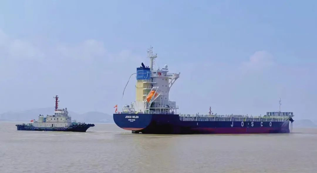 中午,隨著最后一根纜繩離開常石船廠的纜樁,螺旋槳轉(zhuǎn)動(dòng)起來,向后推開水花,“江遠(yuǎn)遠(yuǎn)慧”輪開啟了她的首航。