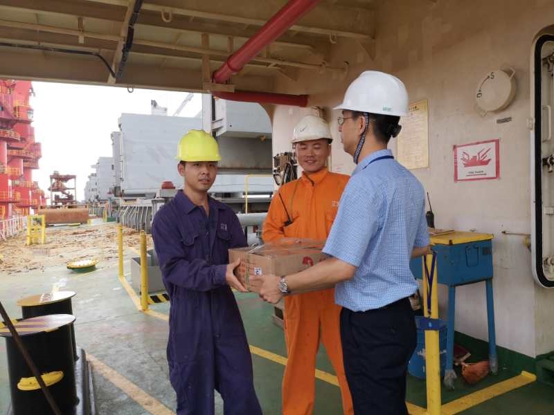 8月16日和17日,公司紀(jì)委書記戴偉率安監(jiān)部、船管部赴靠泊在嵐山和連云港的“江遠(yuǎn)太倉”和“江遠(yuǎn)惠州”輪,代表公司慰問奮戰(zhàn)在盛夏酷暑一線船員兄弟們,并為他們送上慰問金和一些清涼飲料及防暑降溫食品。