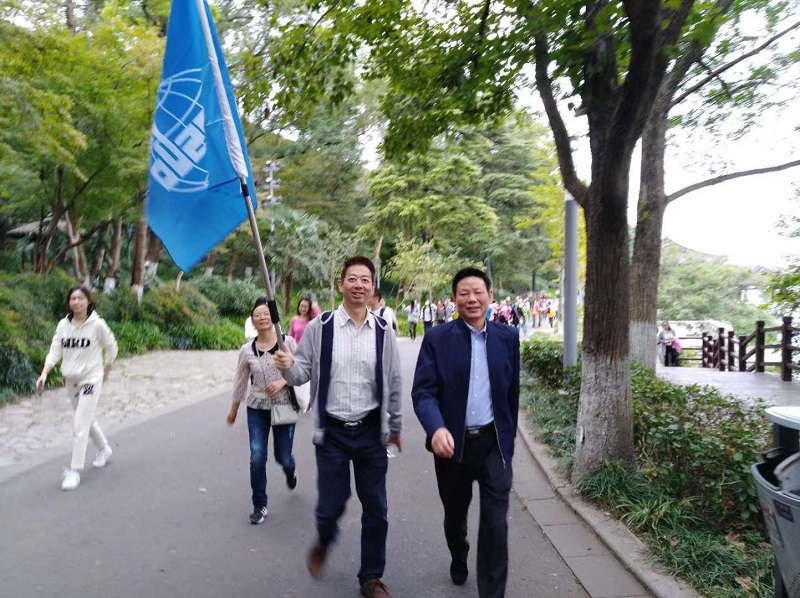 清晨玄武湖畔,微風(fēng)送來(lái)陣陣桂香,參與活動(dòng)的職工們個(gè)個(gè)心情愉悅、精神飽滿。8點(diǎn)30分,由總經(jīng)理李斌宣布活動(dòng)正式開(kāi)始。職工們浩浩蕩蕩地從玄武門出發(fā),三面旗幟迎風(fēng)飄揚(yáng),在清晨熙熙攘攘的人群中鮮艷異常。