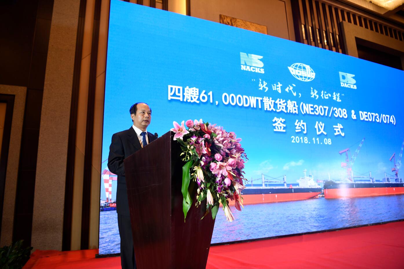 儀式上,省港集團(tuán)董事長(zhǎng)王永安發(fā)表致辭,他指出省港口集團(tuán)是經(jīng)省委省政府批準(zhǔn)成立的省屬特大型企業(yè)集團(tuán),是促進(jìn)省內(nèi)航運(yùn)高端要素集聚、港航產(chǎn)業(yè)統(tǒng)籌發(fā)展的重要平臺(tái)。王董事長(zhǎng)強(qiáng)調(diào),江蘇遠(yuǎn)洋作為省港集團(tuán)航運(yùn)板塊的龍頭企業(yè),承擔(dān)著引領(lǐng)航運(yùn)板塊一體化發(fā)展的重任,此次與中遠(yuǎn)海運(yùn)川崎再次合作投資建造4艘散貨船,是江蘇遠(yuǎn)洋在新時(shí)代背景下的新舉措,是雙方合作的新起點(diǎn)。王董事長(zhǎng)希望江蘇遠(yuǎn)洋以此次合作為新的起點(diǎn),進(jìn)一步增強(qiáng)大局意識(shí)、發(fā)展意識(shí),認(rèn)真貫徹落實(shí)集團(tuán)發(fā)展戰(zhàn)略,以打造省屬航運(yùn)企業(yè)龍頭為目標(biāo),加強(qiáng)航運(yùn)能力建設(shè),不斷推動(dòng)江蘇遠(yuǎn)洋持續(xù)健康發(fā)展。