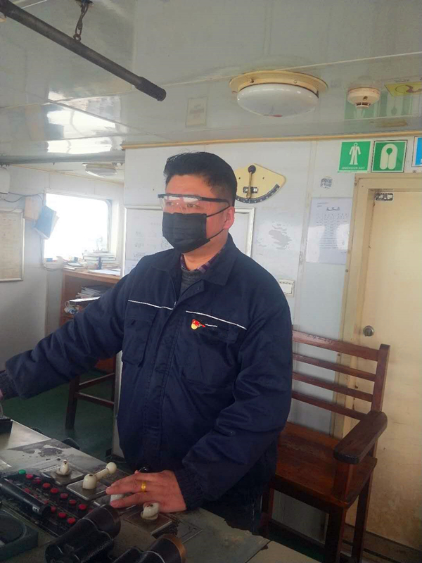 他堅(jiān)持每天把宣傳工作與防范措施的落實(shí)相融合、做在前,每天帶領(lǐng)和監(jiān)督船員做好到港前佩戴防護(hù)用具,到港后值守工作,避免船員與外部人員接觸。每天兩次為船員做好體溫測(cè)量,帶領(lǐng)大家做好全船的衛(wèi)生消毒工作,確保了全體船員的健康安全。