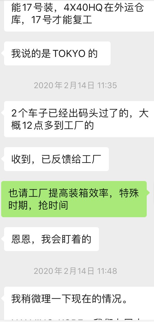 疫情防控不能松懈,復(fù)工復(fù)產(chǎn)同樣不能遲緩。太倉海運長江業(yè)務(wù)負(fù)責(zé)人金飛與中集東瀚副總經(jīng)理兼安徽片區(qū)負(fù)責(zé)人賈宏蔻及時溝通,會商物流解決方案——必須立即啟用“陸改水”模式,由駁船從南京龍?zhí)陡圻\空箱到合肥港,在合肥安排集卡到廠裝箱,再把重箱從水路運回南京龍?zhí)陡邸?/span>