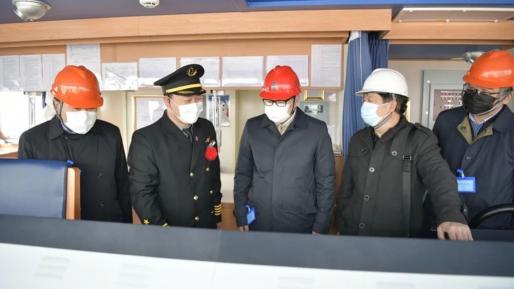 “江遠(yuǎn)永州”輪上,船長(zhǎng)劉全省匯報(bào)了新接船的疫情防控工作安排和船舶貨載情況。王樹(shù)華對(duì)“江遠(yuǎn)永州”輪全體船員在疫情防控的關(guān)鍵時(shí)期,做好新造船的高質(zhì)量交付和接船工作表示了充分肯定,對(duì)即將遠(yuǎn)航巴西的全體船員進(jìn)行了慰問(wèn),并針對(duì)當(dāng)前疫情在全球迅速蔓延的嚴(yán)峻形勢(shì),就遠(yuǎn)洋船舶做好疫情防控和營(yíng)運(yùn)生產(chǎn)提出具體要求。