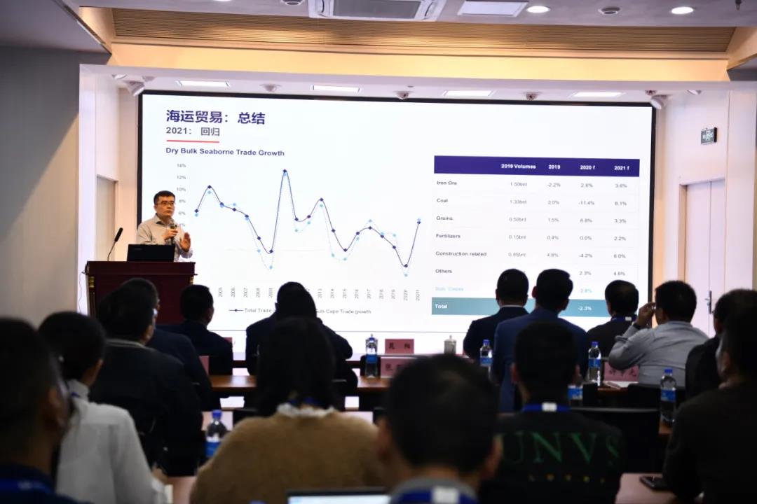 李成山就當(dāng)前世界貿(mào)易形勢、海運量變化、世界船隊運力規(guī)模、新冠疫情對干散貨海運市場的影響及未來干散貨市場的走勢和增長空間等方面內(nèi)容進行了生動而詳細的分析,并與參會人員進行了深入的探討和交流。
