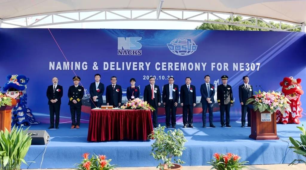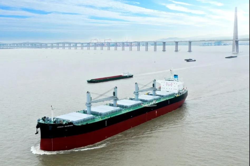 乾坤萬(wàn)里紅楓艷,十月金秋萬(wàn)福連。10月30日上午,江蘇省港口集團(tuán)江蘇遠(yuǎn)洋運(yùn)輸有限公司投資建造的“江遠(yuǎn)貴州”輪在南通中遠(yuǎn)海運(yùn)川崎船舶工程有限公司(NACKS)1號(hào)碼頭舉行命名交付儀式。這是今年中遠(yuǎn)海運(yùn)川崎向江蘇遠(yuǎn)洋交付的第3艘節(jié)能環(huán)保超靈便散貨船。
