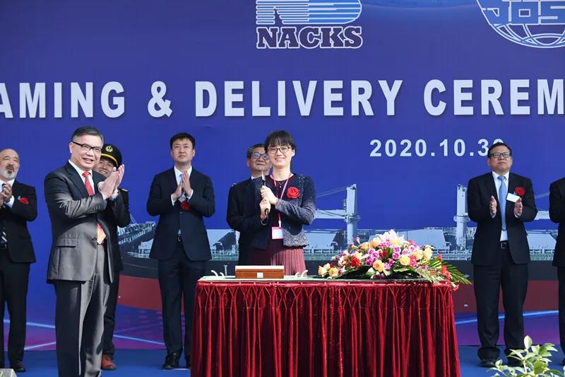 江蘇省港口集團(tuán)、江蘇遠(yuǎn)洋、南通中遠(yuǎn)海運(yùn)川崎、工銀金融租賃、香港克拉克森上海代表處及日本船級(jí)社等相關(guān)單位的領(lǐng)導(dǎo)和嘉賓蒞臨儀式現(xiàn)場(chǎng),共同見(jiàn)證新船命名與交付。