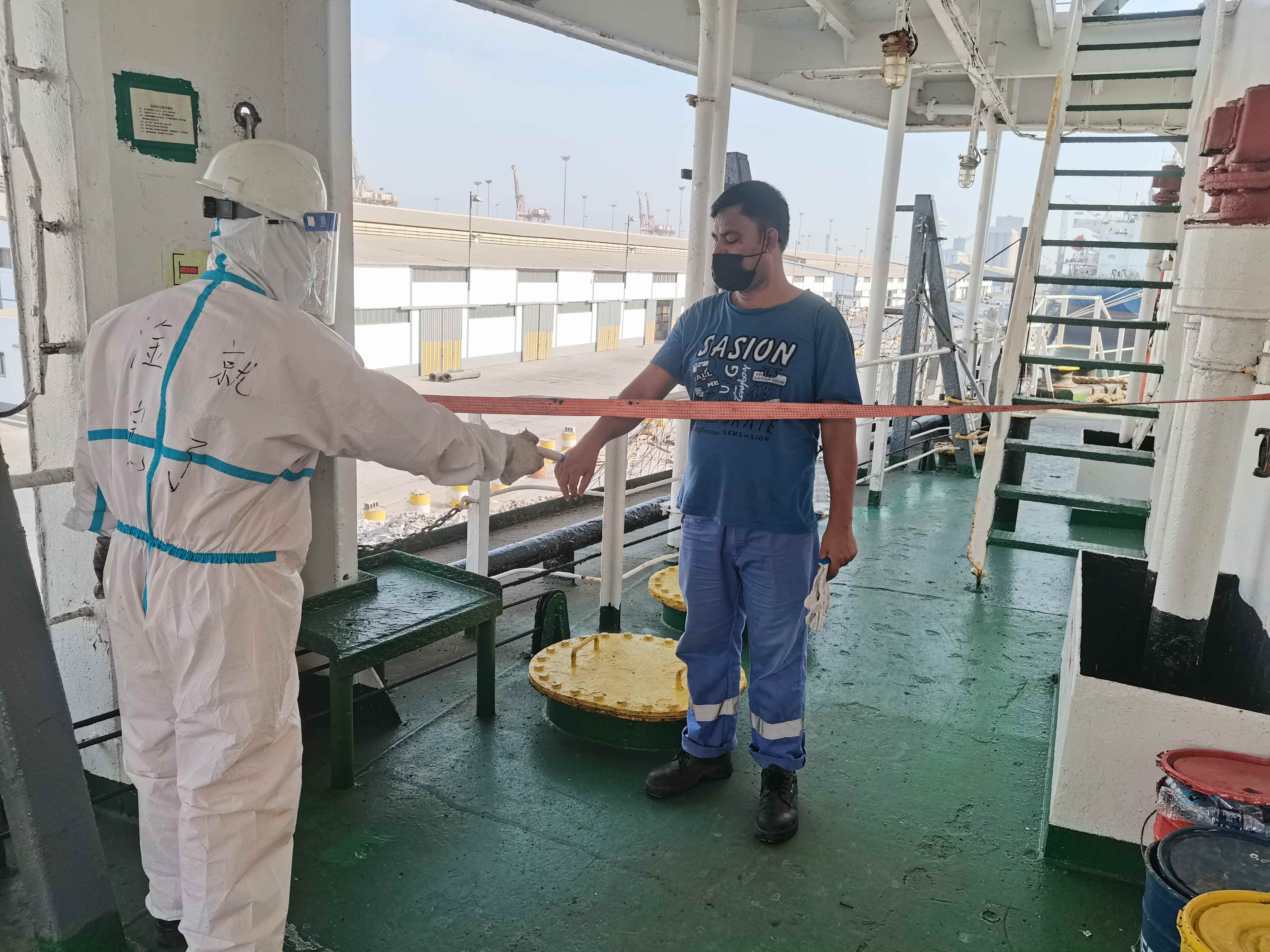 在關(guān)鍵細(xì)節(jié)上,大家更是容不得絲毫疏忽,如引航員、PSC官員等必須進(jìn)入船舶工作、生活區(qū)域的,一定要測(cè)量體溫,確保正常后在船員引導(dǎo)下方可沿規(guī)定路線進(jìn)入規(guī)定區(qū)域開(kāi)展工作,并對(duì)其所經(jīng)過(guò)區(qū)域嚴(yán)格消殺,相關(guān)船員全程嚴(yán)密防護(hù)、保持安全距離。船員進(jìn)入克令吊操縱室內(nèi),也要做好防護(hù),并對(duì)操縱室每一個(gè)角落實(shí)施消殺,杜絕潛在的風(fēng)險(xiǎn)。