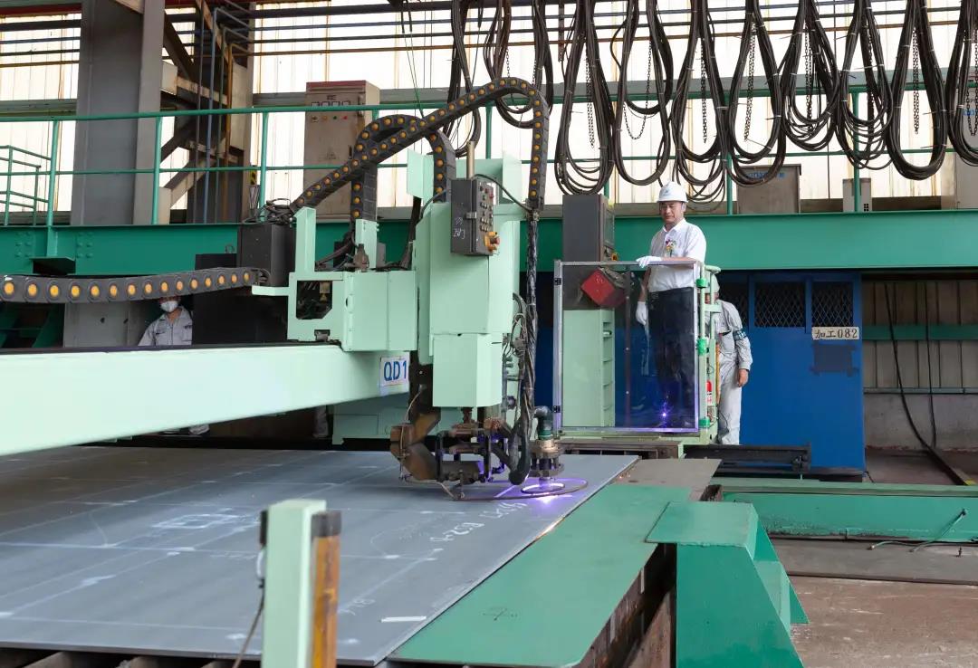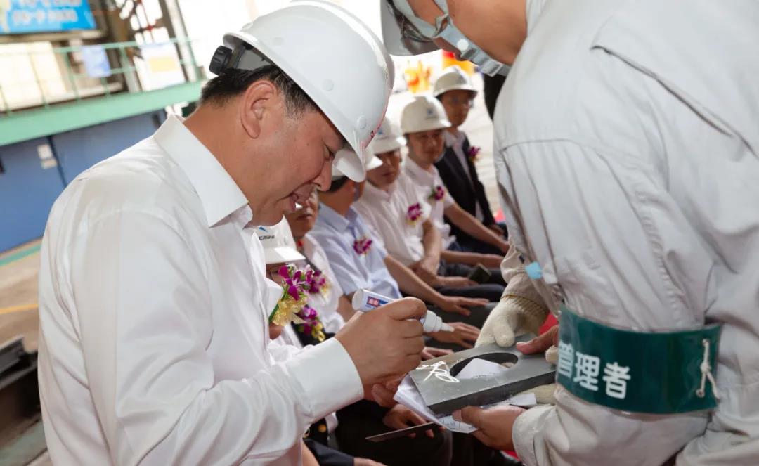 在加工車間,江蘇遠(yuǎn)洋黨委書記、董事長晁陽對(duì)鋼板進(jìn)行確認(rèn),紀(jì)委書記丁邦林按下點(diǎn)火按鈕,一道弧光閃爍,現(xiàn)場響起了熱烈的掌聲。副總經(jīng)理劉冰代表船東方簽署了開工證明,這標(biāo)志著新船SS297正式開工建造。